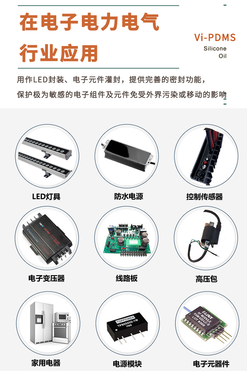 按照有機(jī)硅應(yīng)用的用途去分類(lèi),主要分為以下三類(lèi):①粘結(jié)劑/密封劑②灌封劑③絕緣凝膠,它們的主要成分是硅酮,即二甲基硅油,分子式:(CH3)3SiO(CH3)2SiOnSi(CH3)3 ,系有機(jī)硅氧化物的聚合物,是一系列不同分子量的聚二甲基硅氧烷,黏度隨分子量增大而增加。