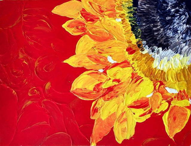 4、它還具有油畫和丙烯畫所沒有的多樣性,畫厚質(zhì)畫它可以不斷的堆積,呈現(xiàn)出浮雕般的效果而不會(huì)塌陷;