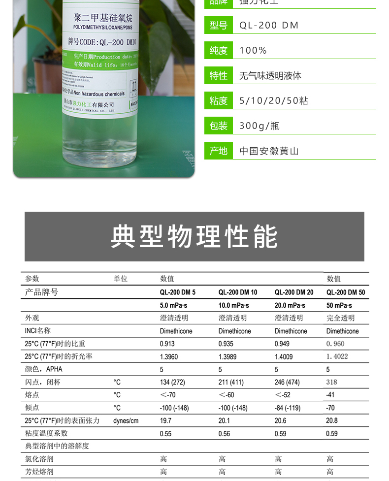 黃山市強(qiáng)力化工有限公司是一家專注于有機(jī)硅新材料,集研發(fā)、生產(chǎn)與銷售為一體的綜合性高新技術(shù)企業(yè)。公司已是有機(jī)硅行業(yè)內(nèi)較為知名的品牌,傾力于打造高品質(zhì)有機(jī)硅產(chǎn)品:二甲基硅油、乙烯基硅油、氨基硅油、乳化硅油、羥基硅油、含氫硅油與紡織品硅油等。砥礪前行,踔厲奮發(fā),強(qiáng)力純硅油,更高技術(shù),更好硅油。