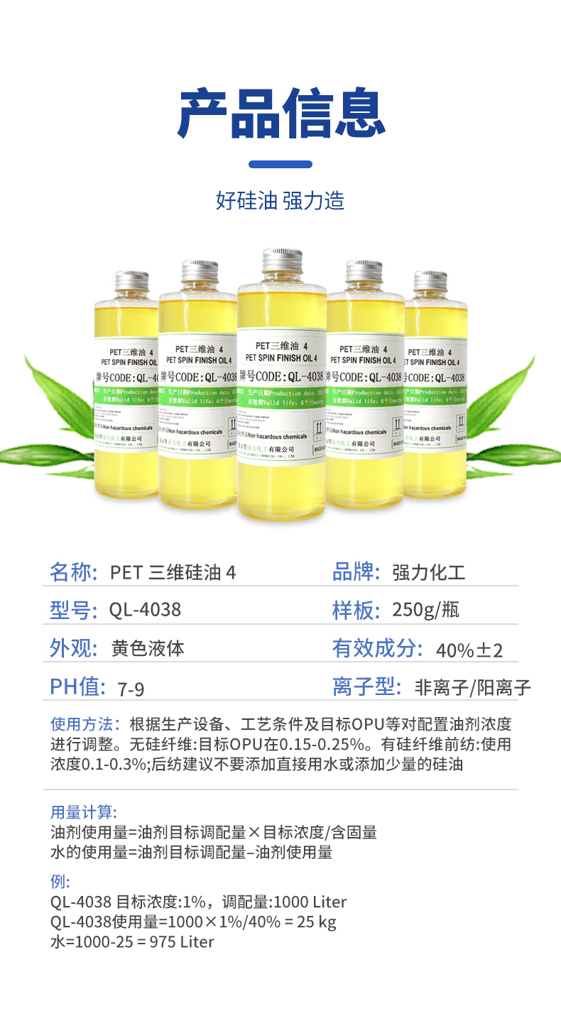 強力化工牌號QL-4038 PET三維油4 紡織處理劑