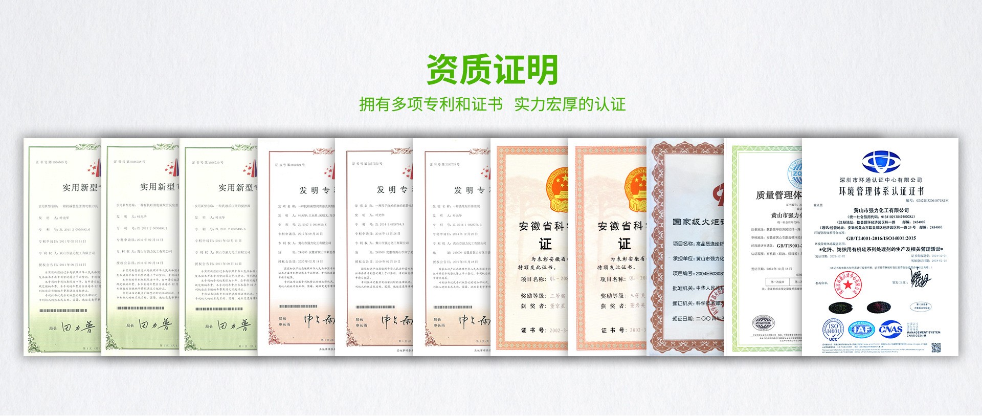 強(qiáng)力化工前后多次被評(píng)為“安徽省優(yōu)秀民營(yíng)企業(yè)”,“黃山市優(yōu)秀企業(yè)”,“黃山市百?gòu)?qiáng)企業(yè)”,“安徽省制造業(yè)信息化示范企業(yè)”,“突出貢獻(xiàn)工業(yè)企業(yè)” “中國(guó)精細(xì)化工企業(yè)100強(qiáng)”,獲得了“黃山市質(zhì)量管理獎(jiǎng)”、安徽省誠(chéng)信企業(yè)、“安徽省勞動(dòng)保障誠(chéng)信示范單位”、“黃山市優(yōu)勝單位”等等榮譽(yù)。