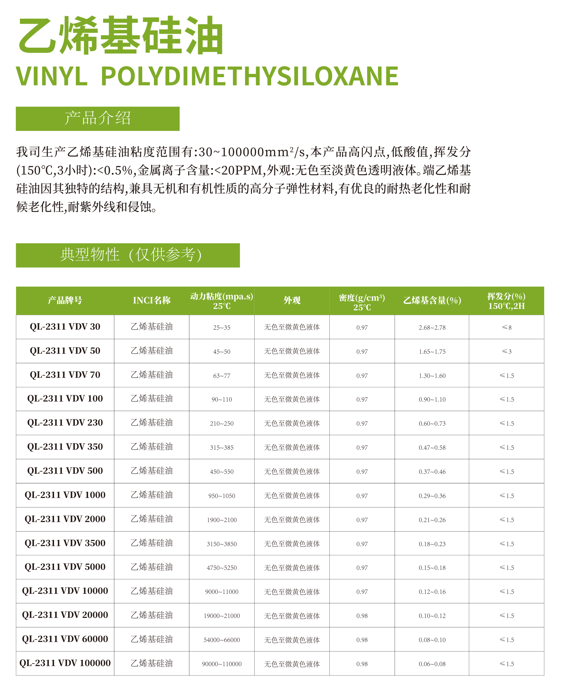 2、乙烯基硅油可以節(jié)省開支。乙烯基硅油的耐用性可以降低新型及老舊電子產(chǎn)品的清潔、維護(hù)、運行以及更換成本。